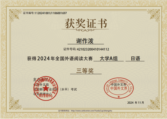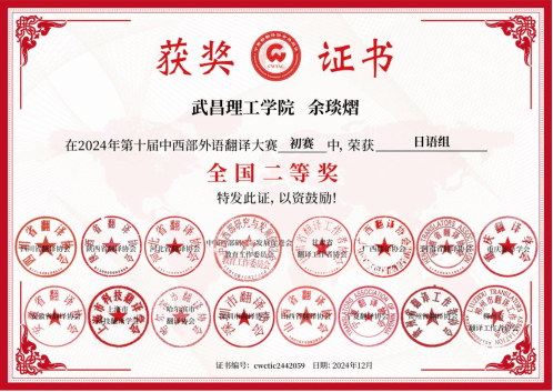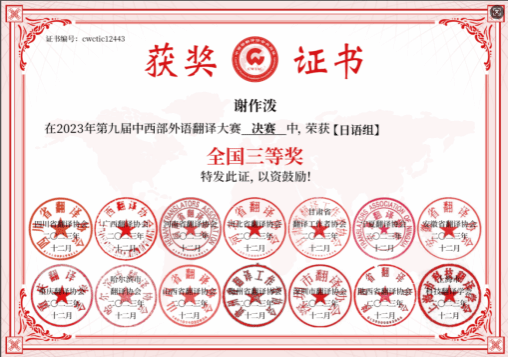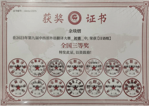 11.2024年第十届中西部外语翻译大赛 初赛,【日语组】全国二等奖