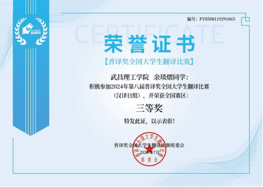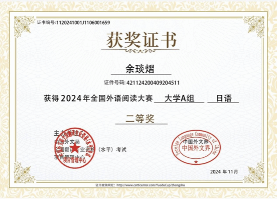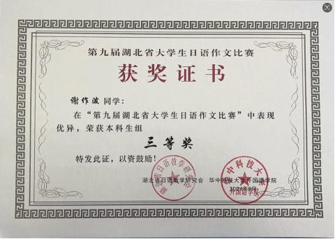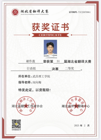 2.第31届湖北省翻译大赛日语组决赛二等奖