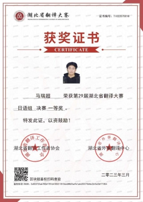 1.第29届湖北省翻译大赛日语组决赛一等奖