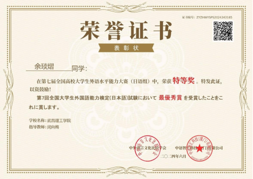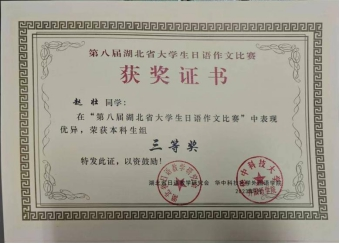 8.第七届全国高校大学生外语水平能力大赛(日语组),特等奖