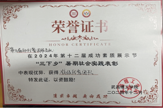 荣获“三下乡”暑期社会实践校级优秀团队
