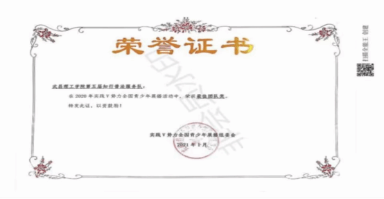 荣获2020年“实践V势力全国青少年展播”最佳团队奖