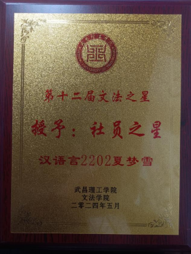 曾获湖北省社会实践优秀工作者、校优秀党务工作者。