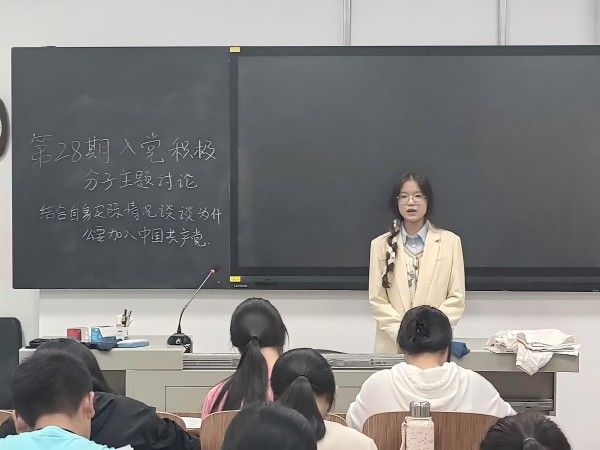 而后入党积极分子纷纷登台发表感言,回忆起从小到大做出的向党组织靠拢的行为。“不驰于空想,不骛于虚声”有的学生退役,在军队的期间,她体会到铁血军情,对组织祖国的热爱,对人民的赤胆忠心,退伍不褪色;有的学生积极参与志愿者活动,关爱孤寡老人深入人民中去,到偏远山区支教不放弃任何一位星星之火的萌芽等。在向党组织靠拢的过程中,他们在困难中保持坚定的信念和集体力量,在实践中提升自己,坚守初心,不忘来时路。