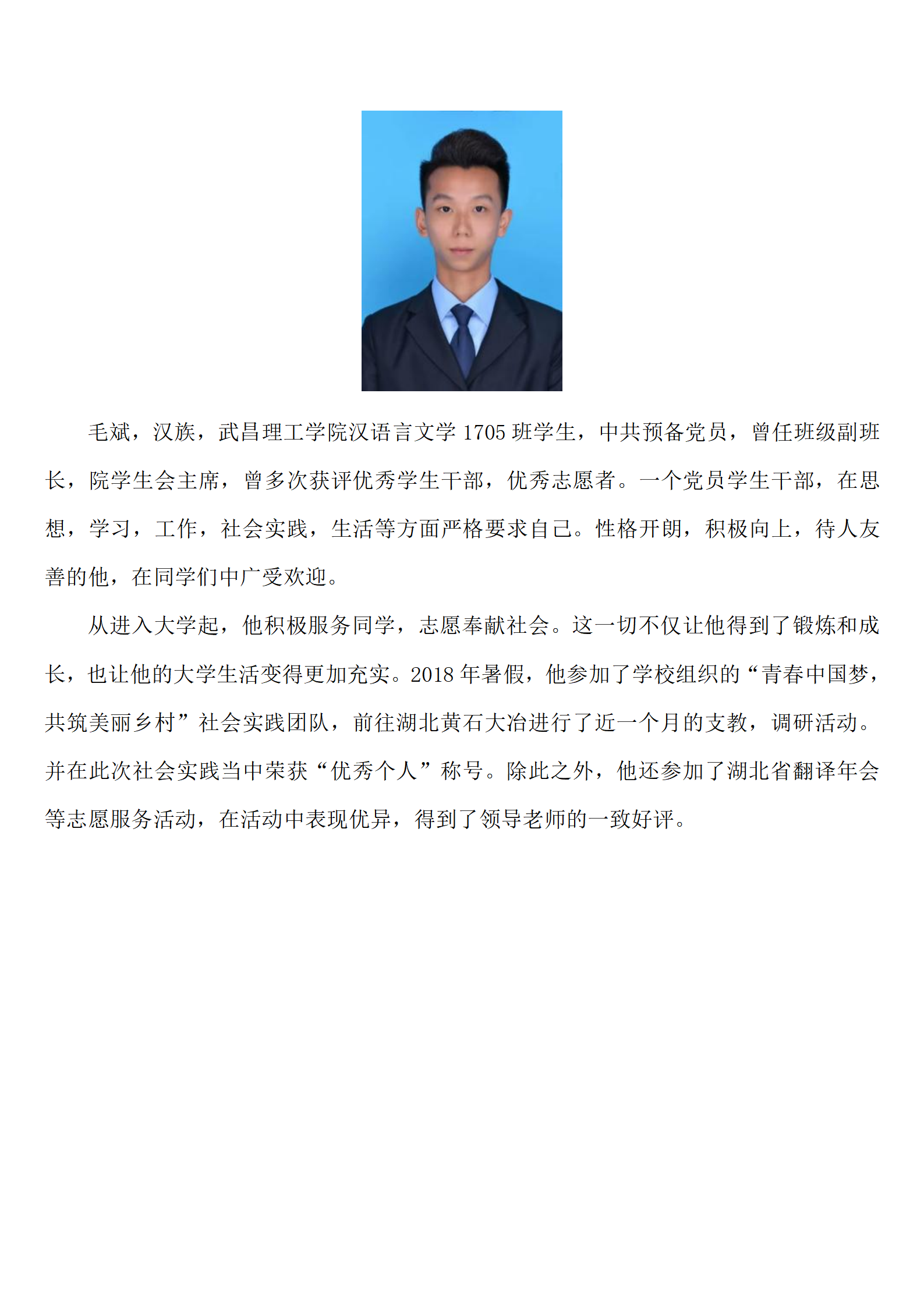 优秀学生党员--毛斌