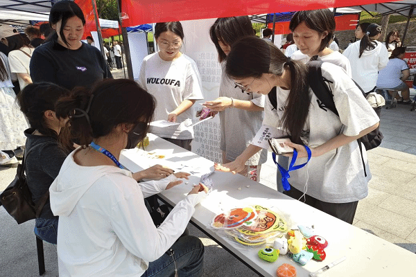 活动开始后,前来进行游戏挑战的同学络绎不绝。同学们首先抽取纸条,再依次完成纸条上的游戏任务。例如在“立瓶子”关卡中,大家需要将瓶子抛起并保证水瓶能够稳稳地立在地面上,成功三次即挑战成功。完成游戏的同学不仅能够得到太阳集团官网8722的特色盖章,还能挑选一份小礼物。