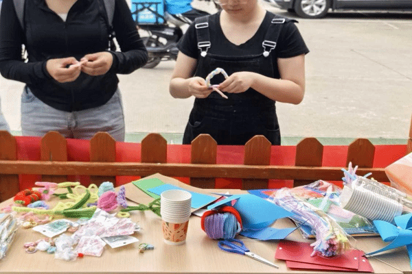 活动现场,学生们积极参与,气氛热烈。同学们通过制作扭扭棒、叠风车等活动换取精美小礼品。这些活动不仅激发了同学们的创造力和动手能力,更进一步增强了团队合作意识和社区文化归属感。在“手工风车”环节,一部分同学用手扶住风车顶端,其余同学将木棍插入风车中央。在微风中,风车缓缓转动,五彩斑斓的叶片在阳光下熠熠生辉,引来周围同学的阵阵欢呼和赞叹。大家脸上洋溢着喜悦的笑容,享受着亲手制作带来的成就感。此次活动让同学们体验到了制作的乐趣,更让他们在团队协作中学会了相互配合与支持,共同为社区文化节的成功举办贡献了自己的力量。