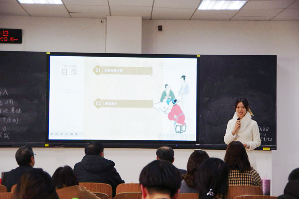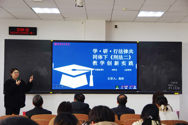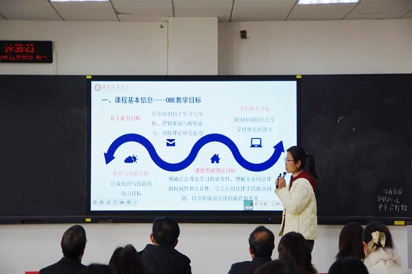 中级及青年组的高彤老师构建了“学·研·行法律共同体”下的《刑法二》教学新范式。程钰涵老师针对《现代汉语》课程,提出了“破局与重构”的“一三三三”智慧课程模式。高级组的王欣老师因其将直接代表学院参加校赛,本次未作现场展示。