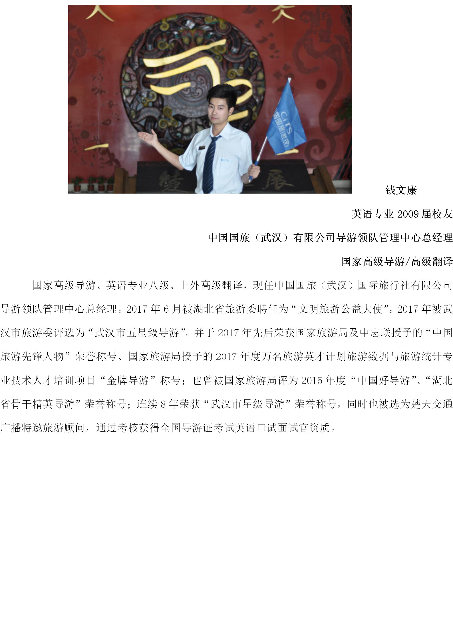 中国国旅(武汉)有限公司导游领队管理中心总经理、国家高级导游、高级翻译